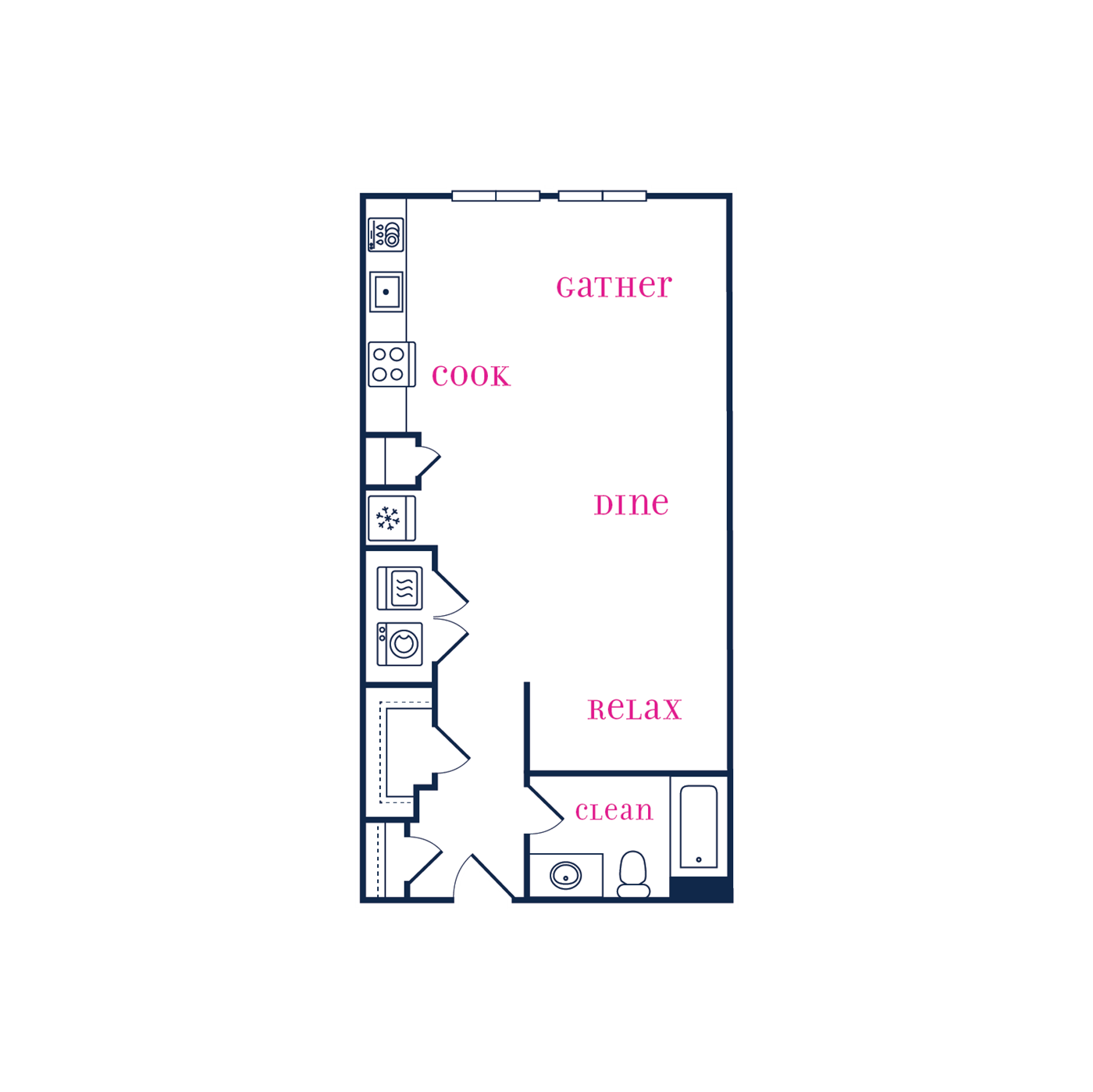 Experience crafted modern apartment living in downtown Fort Worth, right around the corner from major employers, fabulous shopping, savory restaurants, exciting recreation and entertainment venues. Our mid-rise apartments for rent offer a variety of one and two bedroom floor plans that will suit your lifestyle. Find yourself surrounded by style and quality amenities including a stainless steel appliance package, kitchen islands, garden style soaking tub, and downtown views. Guests will have plenty of room to relax and the open kitchen and living areas give you the opportunity to interact while preparing a meal. Each of our spacious apartment homes include a washer & dryer and wood style plank flooring throughout makes cleaning up quick and easy.